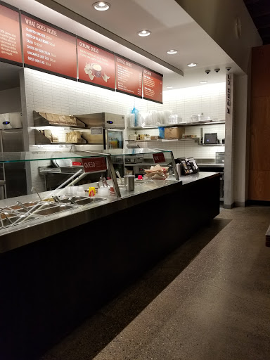 Only time Ive ever been let down by Chipoltle was at this location. We went at 6:30pm on a Friday and they were out of multiple ingredients (salad greens, mild salsa, guacamole). They did not make any effort to get these replenished, simply "oh, were out". My boyfriend also ordered a burrito and the rice was not completely cooked. When we told the cashier she said "sorry" but did not do anything about it- why would you continue to serve other customers partially cooked rice? Very disappointing experience!