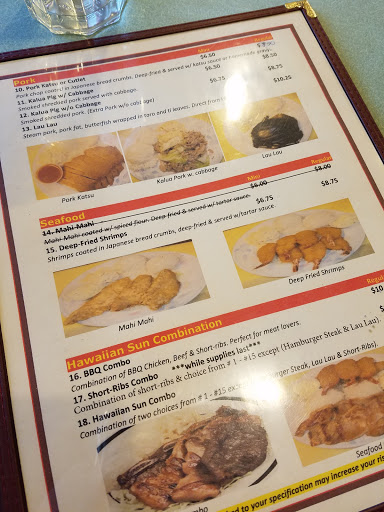 Having lived in the Islands... THIS IS THE BEST HAWAIIAN FOOD IN TOWN!!!! And I just cannot praise the quality of their LAU LAUS enough, for the sheer taste and portion of the fatty fish, roasted pork, and ABUNDANCE OF TARO LEAVES they are made of. The are even approved of by my Naturopath! I CANNOT RECOMMEND THEM ENOUGH! BTW, if you like Oxtail Soup (bone broth) then you will love it Hawaiian Style, not the heavy American red sauce kind, but the FRESH BONE BROTH with lots of green onions and your choice of rice or noodles. YUMMY... MAHALO, HAWAIIAN SUN!!!