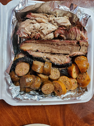 Very tasty Southern style BBQ, not all covered with sauce like Western style. Hot link sausage is really good.