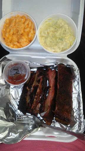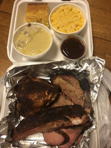 We had the 3 meat, 3 sides meal. We chose ribs, brisket, and chicken with potato salad, Cole slaw, and beans. The ribs were flavorless, the brisket was good but very fatty, and the chicken was chewy. The potato salad had no flavor, the Cole slaw was bland, and the beans were okay. All in all, I wouldnt recommend it to anyone,and I wont be going back.