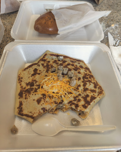 Excellent spinach, Italian sausage, and cheese crepe. We went on a Sunday so the wait was a little longer, but it was worth the wait. Good amount of food for price.