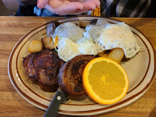 Heres the love/hate of it. Ive been going there for years and always happy with the food and service up to this morning. Six people in our party and we sat in two side by side tables with the waitresses aware of the arrangement with two tabs. My wifes table of three got their orders in a reasonable length of time while mine waited over twenty minutes after that. The waitress that I had had attitude right from the beginning and after being blown off once when we asked when to expect our order she copped an attitude and was less than truthful. I would suggest that she simply didnt turn in the order when she should have and didnt have the maturity to acknowledge that or offer an apology. . I had a "chat" with the manager and another waitress took over our table. Now lets have a look at the food which is usually very good to excellent "diner food" My wife specifically asked for her fried eggs to be medium to well done so the whites were solid. I heard her say that in detail. They arrived very easy over and were sent back only to receive the eggs again the same way. Two people ordered eggs Benedict. Eggs Benedict comes with Hollandaise sauce which is made from lemon, egg and butter not a cheese based sauce. A friend ordered an omelet with sides of bacon and sausage. Sausage arrived but not the bacon. I ordered a sausage dish with two eggs poached. Poached eggs were in a small bowl which is fine as long as they drain the eggs so one doesnt end up with egg soup! Maybe best not to go there on a weekend?