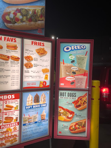 Great prices and open late. They have the best corndogs and their chili cheese fries are yummy too! Plus their drink cups are comical. Lol