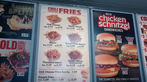 Fantasic chili sheese dogs. service is usually better-then-OK. Room for abouot 5 people to eat inside, and 4 or 5 good sized tables outside. There is a drive through. Also, as of 8 Feb 2015 the store is being remodeled. Looks like they are adding some floor space and improving the drive-through, so staff does not have to go outside to seliver food. Give it a try- the chili sheese dogs changed my life...