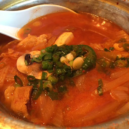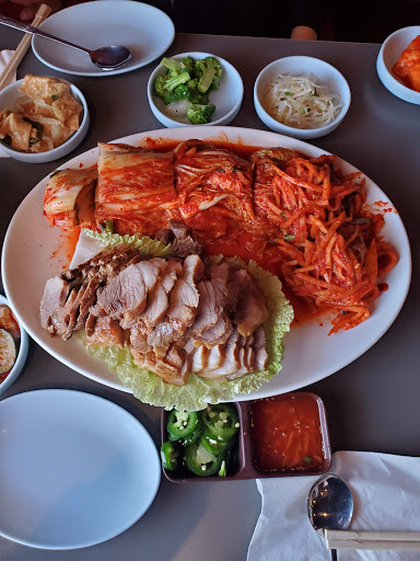 Asked for more side dish and the server said they were out of it. Saw the table next to us getting served with side dish theys said they were out of. Why LIE? Also owner on a review said bossam will come quicker and I think that is a LIE, I got mine after the tofu soup and I asked where is my bossam, thats when they brought it. Over priced compare to taste and servers are definitely not friendly. Never go again. I am a Korean and side dishes are meant to be served on request but LYING about it even got me more disappointed.
