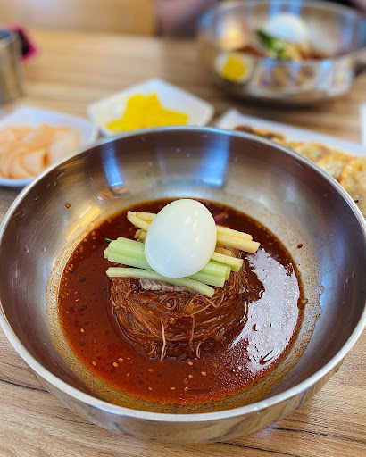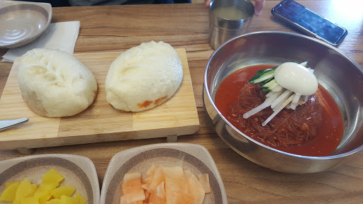 Friendly staff. Mandoo and naengmyeon were delicious.