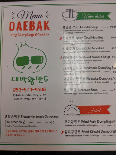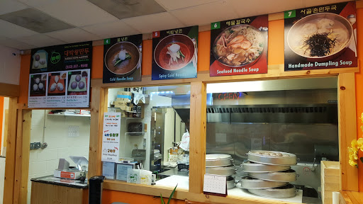 Wang Mandoo or "King Dumpling" is done right at this place! Its not the typical dumpling you think of, but the king dumpling is my absolute favorite out of the various options for dumplings. They also sell fried dumplings, but I dont think anything can beat their king dumplings. I love the plating, as the dumplings come out on this wooden little table thing, and would recommend dining in at least once! Their limited selection for noodle dishes are also very flavorful and delicious as well!!