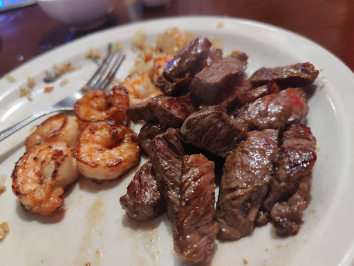 My family and I have spent 1000s in the last several years at this restaurant. Many times the service was shaky, but the entertainment of the cooking process and the food was good. On the most recent visit, our cook zombie walked through the food preparation without a smile, slopping our servings on our plates and into tea and onto the table. The rice was undercooked, the chicken like a chip. Our server didnt check to see if we wanted or needed anything else. The tip was grabbed off the table before we had all finished eating and were still chatting. The expansion and ambiance are very nice, but the prices are higher and service is of lower quality. When a small group pays over $300 for a lunch, the service and attitude should be much higher.