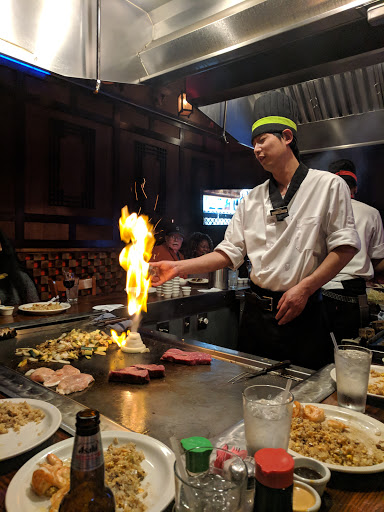 Dined here today, and my goodness- what a disappointment. This was our first visit. Ordering from the lunch menu, our meals were priced at $9.50 each for veggie yakisoba and chicken yakisoba. The chef took his position at the grill and immediately produced an impressive fireball bright enough to momentarily blind me. A bowl of rice and clear broth soup (not miso) was served. The rice had a suspiciously buttery flavor and certainly not the plain white steamed I was expecting. This is NOT authentic. The chef cooked the vegetables on the cooktop and served those first. It was another 10 minutes or so until the rest of the meal was prepared and served. Did not care for that, but we were not given a choice as to seating, as we were led to the grilling tables immediately upon arrival. The bill was another story. At $32.00, a far cry from what was advertised on the lunch menu, even with soft drinks. Inquiring with the cashier at checkout, we were told because we ordered a vegetarian yakisoba (apparently not on the lunch menu), we were charged the full dinner price of $13.00 Even so, this bill did not compute. A bit miffed, but not wanting to bemoan the discrepancy (they have sharp objects here, you know?), we left. Let me add that the vegetarian dish my boyfriend ordered was completely void of noodles. Um, this IS yakisoba, right? Thankfully, my portion was large enough I wound up having a fair amount of noodles to offer him, but still...this was an unusual meal service. The waitress should have advised us to order two chicken yakisoba dishes, and told the chef to leave the chicken out of one in order to have the lunch price.