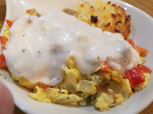 Soooo many food varieties! The combo meals are my favorite because i can literally build my own breakfast and substitute anything from the menu into it for a smallish price. The portion sizes are perfect -to a little large! I have never left this place hungry or dissatisfied with the food/service. The prices did go up a bit, which is a bit annoying, and the menu has shrunk a bit, but the taste of the food hasnt changed and thats what matters!