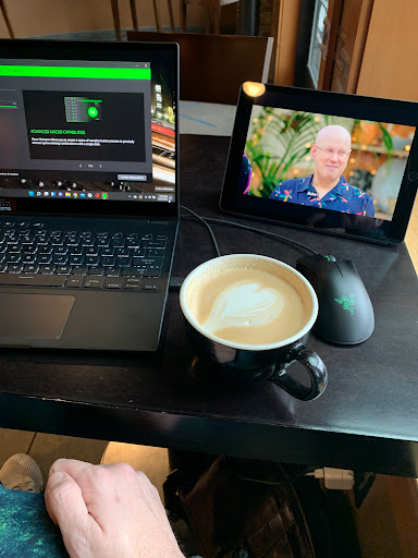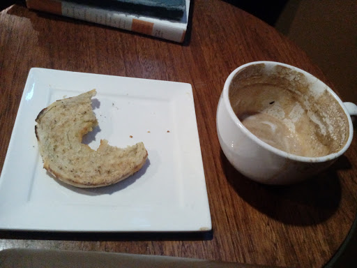 This us a terrific place! Great latte, almond crescent AND an easy chair infront of a fireplace. Great! (Clean, tidy and very friendly.
