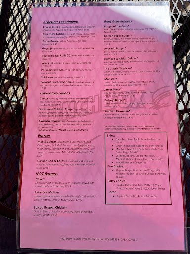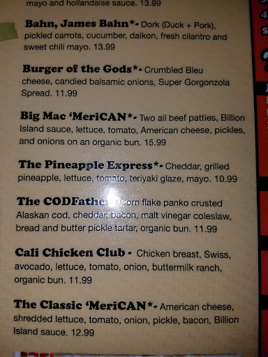 The burgers are quite tasty. Food is expensive though (burgers $10-$15). We usually dont go unless we have a coupon or gift certificate. I especially enjoy the Dork burger (combination of duck and pork). Menu changes constantly, as they are constantly experimenting with new combinations, henchmen the name Lunchbox Laboratory. Shakes are especially tasty, but at $5-$7 per shake, we usually dont buy one. Part of the decor is dozens of old-fashioned metal lunchboxes.