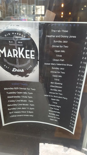 What a vibrant place to spend an evening! I was there for their live music - The Shy Boys - and plan to return for other upcoming bands. Markee Coffee seems to be well run and well staffed. It is more of a beer, wine and coffee place than a food place. Of course there is food to be had in the way of appetizers and small plates. I had the hummus plate which was quite delicious as well as the brown sugar and mozzarella flatbread. The flatbread was interesting and good to try for something different. The happy hour pricing is quite competitive - $5.00 glasses of wine, $5.00 flatbread and similar on the other items. A nice variety of draft beers too. A fun, casual place to gather with friends, or go to alone as did, eat, drink, dance, or play trivia if you are so inclined.