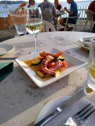 Nice view of the water, although the windows were VERY fogged with dried salt spray and needed a good cleaning. Ok prices. After four requests was finally served plain sliced (Italian?) bread, cold, but the seasoned oil dip was good. Service was very slow even though the dining room was only a scant half full. I ordered the special of the day, which was cappelini with crab, and while it did taste good, there were only flecks of crab, and for a $15 lunch entree Id like a little more crab. I dont usually give negative reviews, and I might be disappointed because it didnt live up to the enthusiasm of the friend who is a regular there, but overall I was underwhelmed and will probably not return.