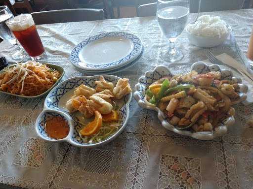 Before my buddy moved we ate lunch here at least once a week. Always got Pad Thai, 2 stars, Chicken or Pork. Dont even listen to the people that say the service is terrible, it can get busy, but the people there are friendly and if you go in there with a good attitude and are friendly to the employees theyll show you the same attitude. Theyre always joking with us and they dont even give us menus, they know what were gonna order! The food is great, went to an expensive thai restaurant and the $15 Pad Thai was terrible! For the price, this is great food, and the restaurant has a comfortable atmosphere. This place is where its at!