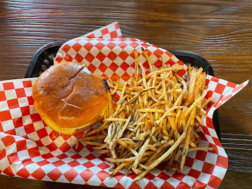 Sum up: Great burgers. Awkward customer service. Pros:The shoe string fries are fantastic! They have the right amount of salt, garlic, and rosemary. The burgers are really good, as well. My favorite place to grab burgers in Gig Harbor. My personal favorite is the caprese burger. The restaurant is fairly small and popular but it has never been too busy when Ive been there. Cons: You always have to wait a while for food. The servers always seem like the dont want to be there which makes me feel awkward and uncomfortable
