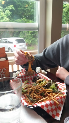 The only downside to this place is lack of seating, it has great food. The basil fries are amazing, I had the Reuben it was so good, kids had hamburger and hot dog baskets and we all shared a chocolate peanut butter shake, so good. Will definitely be returning here in the near future!