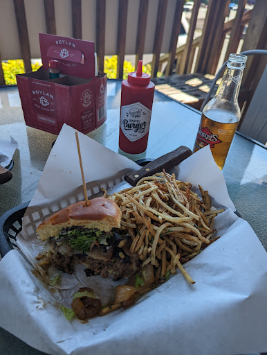 Oh May Goodness! You cant go work stopping here and become a regular customer. Unless you do not want a stacked delicious, mouth water, handcrafted magic burger!. Simple menu, Amazing option. Great old-school bottled sodas selection. Price is a little on the spendy side. But honestly worth every sent. I will spend it every time. The dinning experience is an order counter and a quaint seating area capturing gig harbors old-school laid back fishing community vibe. Its yummy and due to its small dinning area, makes it feel exclusive. Great staff! Friendly and happy. Not your typical stuffy gig harbor customer service. Refreshing experience and blows chain burger joints out of the water!!!