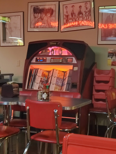 Food was mediocre. Decor attempts retro-diner look but just looks and feels outdated. Server was unintelligible and mumbled. No diet or sugar free drinks available except water. Diabetics be cautioned.