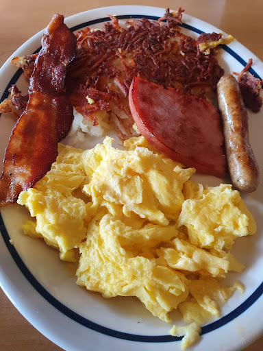 The worst! Staying at the motel 6 right next door to this crappy place and had the worst service ever!! First it took 15 min just to get our drink order, BTW the place is nearly empty. The restaurant looks run down, unclean, sticky tables. Then our slower than a snail waitress took 30 min to get our drinks, I was about to walk out but our food was arriving. The eggs were runny and I had to send them back twice! Mind you, I get it, not every place is 100% but come one, if they want to charge 4.00 for a side of bacon, you would think the service would be a bit better.
