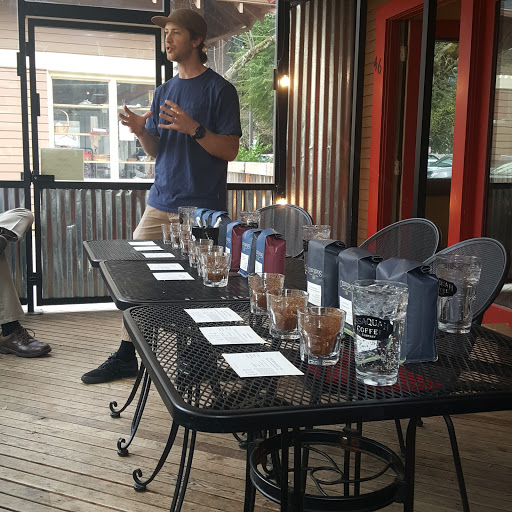 This place had so much character and potential, but the reality is a letdown. Rude baristas, dry pastries, soggy microwaved sandwiches, and coffee that despite being Stumptown roasted always tastes watered down. Also kinda dumb is the "No Dogs Allowed" sign, considering the owners dog is in there every day. Go to Seattle for good coffee.