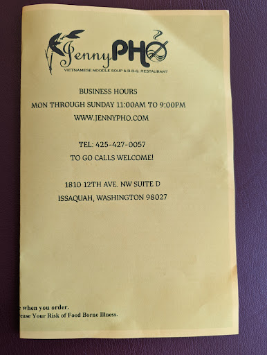 My husband and I love Jenny pho. It is consistently clean, great price, and great food! We end up coming here pretty regularly. The pho awesome, and everything else we have tried has turned out great as well. Three cheers for Jenny Pho - we love you!