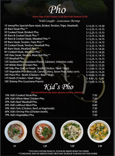 I like Jenny Pho, been going there for years. I like to take a friend along when I go. I generally get a small signature Jenny Pho, with two egg rolls and two spring rolls. All of it is very good. The one thing the servers could improve is filling water glasses. The service, all in all ready to take your order and deliver food but disappear when it comes to the service part of serving.
