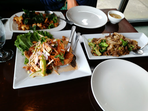 Service was prompt. The prawn fresh rolls were decent and served with both a peanut sauce as well as a tangy sauce. A few things keep me from rating this place above 3 stars, though. I ordered beef Pad Thai (spice level 5). Not much meat to speak of, and the noodles were different than any other Pad Thai I have had previously. Spice level was probably more of a 3. The crab fried rice also seemed a little light on the actual crab. I ordered it spice level 3 but detected no spice at all. That ended up being OK because the flavor was good, and the bites with the white onion were tasty. Finally, though, something that distracted from the dining experience was the two guys rolling open garbage cans in the front door and through the dining room to the kitchen. Not really sure what they are thinking with that maneuver. Had worse. Had better. All-in-all, not much likelihood of me returning.