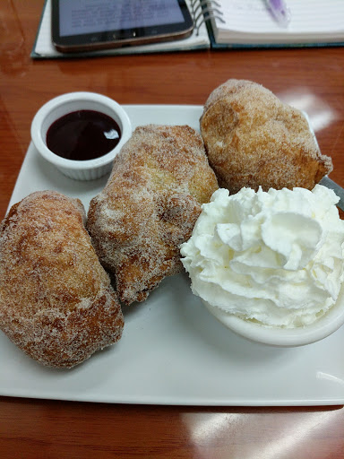 Came for a late brunch today (they serve it till 1pm on Saturdays) and everything was great. Super friendly and accommodating. Get the warm puffy things. Theyre made to order and really good. We will be coming back.