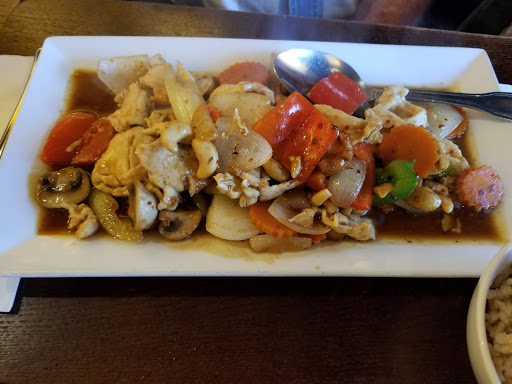 Very nice staff and great food! If you stop in Id recommend the crab ragoons, I forget what they actually called them here but they were delicious, as well as the drunken noodles were pretty bombl!! The teas and coffees are fantastic, cant forget those glasses of deliciousness!! Great for family or a solo dine. I was there with a table of nine and was treated very well. I highly recommend you try this place if you are doing Thai for the first time its a good one.