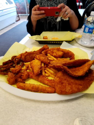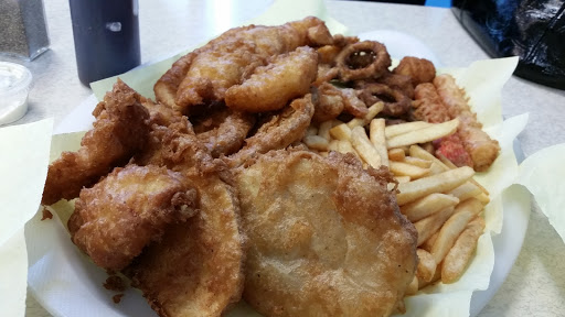 walked in as soon as they opened was greeted with a smile and the prices werent to bad the potato scallops were the size of my hand and the calamari and fish was super fresh. I left fat and happy. this is one of those hole in the wall places that are really really good. all the food is battered right in front of you, no frozen pre battered stuff here.