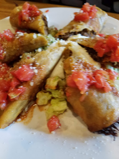 Delicious Chimichanga with great guacamole and good service.