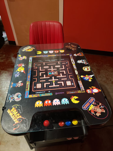 Pretty good pizza with friendly staff and a cozy set up, including a comfy chair by a fireplace and an arcade with old school games.