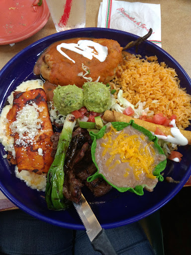 Had the fajita sampler (steak, shrimp, chicken) that was HUGE! Lots of veggies and the usual sides. Excellent quality. Great seating and atmosphere. Highly recommended for your Mexican dinners.