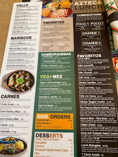Azteca is good chain Mexican food at a reasonable price, with a friendly staff and a good endless supply of chips and salsa. They use a lot of cilantro, so if you have a sensitivity to that, youre probably not going to like it here. Their echiladas en mole are really good.