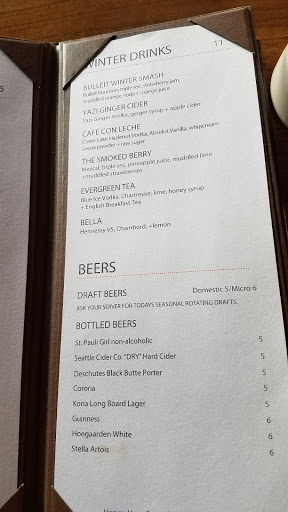 Bar is often filled with fashion-conscious Kirkland people, but the view and the staff and the wait times have never disappointed. Excellent view over the water, good TV placement for sports fans, standard Bar and Grill food in good portions, medium size bar with most of the great views as the restaurant. Small parking lot with an extra one reportedly one block north from the restaurant. I often park on the street nearby.