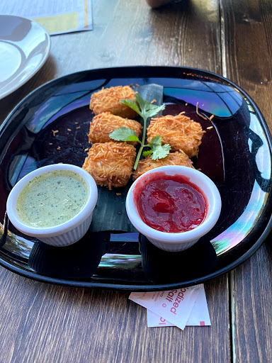 We started with Chemeen Vada and Lemon-Mint-Rose spritzer. The Chemeen Vada was excellent! to an Indian, this is a Masala Vada stuffed with a medium size Shrimp. While the Shrimp was ok, the Masala Vada was just as it supposed to be with the right spices! The Lemon-Mint-Rose spritzer is Soda mixed with Rose sweet water. this was special! For the entree, we had the Nalla Molagu Chemeen Curry with Malabar Parotta. The parotta was amazing, this was closer to what we get back home. very good fluffiness! for each $5 plate of Parotta, you get 2 parotta! The Nalla Molagu Chemeen curry is a Tomato Pepper based curry which comes with a cup of basmati rice Lastly for desert we had Pazhampori with Coconut Ice-cream. Its ripe bananas covered with rice batter and deep fried and served with honey drizzle, coconut ice-cream. The bananas were not sweet and this was a sweet end to a beautiful dinner! would love to visit again and hopefully the wait times are less!