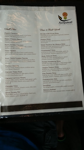 A" hole in the wall "kind of place , when you enter the parking lot, you rethink if you wanna park, bcoz it looks under-construction, a little stringy looking- middle of no where place in Kirkland. the downside is the road construction and lack of a name plate ! But the upside is right in downtown , crowd attracting location and the smell of food just makes you enter in. Cons : 1) Less parking, no plz carpool 2) Lotsa wait time , so go on a weekday to try it 3) Not the best ambience! its better than some other indian restaurants. 4) sitting is limited 5) like any other India restaurant, its loud. Pros: 1) Excellent taste , kerala style menu and a slightly different than what you normally would eat, not spicy . 2) service is good, they are quick and nice. 3) Multiple desert options and they are not the regular indian deserts. thats a plus.. 4) price is $$ . for 2 of us, was 50$ 5) great place for dosas. A must try!