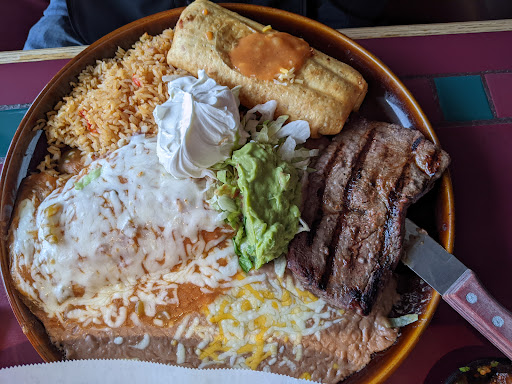 The waitress was attentive and flexed her skills by memorizing our orders. Everything we ordered arrived although we had to remove the tomatoes which we had asked to be left off. Our margaritas barely had any slush or alcohol to them. More like 2/3s ice and 1/3 syrup at the bottom. No salt on the rim and the glass was garnished with a slice of orange (cheap looking imo). My $14 combo platter consisted of a 4oz steak, a taquito, and an enchilada with plain rice and runny beans. My steak was the hardest piece of meat Ive eaten in years. I labored just to cut through it with the knife. Chewing did little to relieve the rubbery texture. For my other dishes, I should have ordered the chicken. I ordered beef. It was exactly identical to Taco Bell beef which I guiltily enjoy but its not something I want to pay a restaurant price for. 2 Dinners and 2 drinks totaled $47 for sub-par food which felt like it should have stayed on the bar side of the restaurant. In short, do not go here for the food. There are many other great Mexican restaurants, Mexican fast food, and Mexican taco trucks which beat this place hands down.