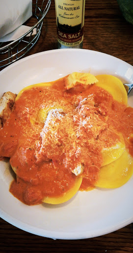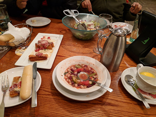 Family of four, two kids, two adults. We arrived without reservations early on Sunday evening (just before 6). We were seated promptly and our waiter arrived shortly thereafter with menus and the like. In general, he did a fine job with no issues, but was also generally unremarkable. With one exception, he got the order correct. But he was both uninspired and uninspiring. He was 15% tip material, no better, no worse. The food was pretty much the same. it was average fare for a just-above-average chain restaurant. We ordered the cheese pizza and chicken parmigiana for the kids, my wife had the chicken marsala and I ordered a few of the taste of Italy small dishes -- The crispy risotto balls, scampi alla greca, and crispy asparagus. We also took advantage of the ‘bottomless’ salad. The salad was decent, with a variety of extra stuff alongside iceberg lettuce. Its sin? Not nearly enough dressing, and a few too many pepperoncini. Without enough dressing, the juice from the peppers overwhelmed the salad and the tastebuds. One quickly learned to avoid that simply by not cutting into the peppers. We had three servings of the bottomless salad, all of which had the same issue. The scampi was set on a layer of polenta and covered in puttanesca sauce that was too heavy on black and green greek olives. I like a good puttanesca on occasion, but the abundance of olives made the sauce overly salty and it overwhelmed the more subtle flavors in the rest of the dish. The polenta never stood a chance. The crispy risotto balls were also a disappointment. Risotto should not be deep fried. While not overly greasy, it tasted like a deep-fried ball of, well, something bland. The waiter brought the incorrect asparagus dish, but what he brought was actually quite nice -- perhaps the best of the taste dishes. They were breaded lightly and deep fried, accompanied by a garlic aoili. My kids were happy with their dishes, and the chicken marsala was nicely done as well. it was tender, moist and reasonably flavorful. But it was also unremarkable -- Ive had as good or better elsewhere. The pasta with both the parmigiana and marsala was served unadorned and unsauced next to the chicken, as though they had no relationship whatsoever. Plain pasta in an Italian restaurant? C’mon. One final observation: Very few entrees included vegetables. It was all pasta (no surprise there) and garlic mashed potatoes. Really, OG? Real Mediterranean food generously employs fresh local fruits and vegetables. (Yes, there’s a footnote that says you can substitute vegetables, but what? And how good are they really, if they don’t offer them up as standard fare?) At an average of about $20 per dish, I think you can afford to offer up more than mashed potatoes or plain pasta served as a side not a component. And that, I think, sums up the visit over all. The experience was okay but unremarkable and a bit overpriced. I normally would have left somewhere in the neighborhood of 20% gratuity. I left slightly more than 15% instead.