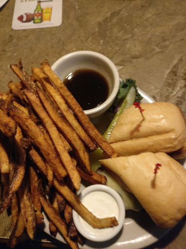 Basically a family-friendly (meaning they will let kids in) sports bar. Lots of TVs and noise, a bit too much if you ask me. Food is decent buy a bit pricey. Has a full bar but again, prices are a bit high.