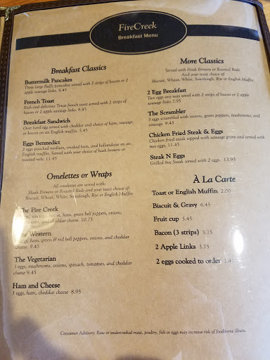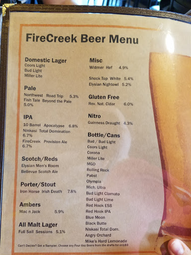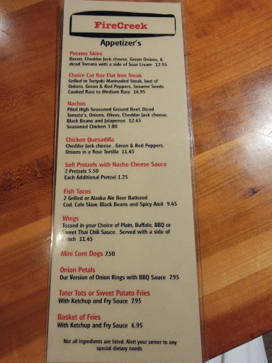 Old fire Creek menu would get five stars, but the new one is a 2 at best. Love the remodel, just bring back the old menu....