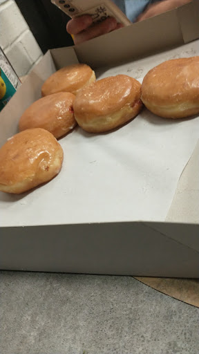 I was just in there. I ended up waiting approximately 3 mins before someone finally came up to me. While waiting all I could hear was someone coughing really really bad. Then once the lady came to help me. I could hardly understand her. When I asked for a certain doughnut she said they didnt have any I asked if they were gonna make anymore she said no. She seemed to be getting frustrated cause I was unsure what doughnuts I wanted as that was my first time there. When she rang me up she charged me 9.99 when the sign above her said 8.99 when I said something she didnt say anything this is double the price I would normal pay anywhere else. The doughnuts arent fresh at all. Poor management. It smelled gross in there. And the fact there where just pictures thrown on the wall made it feel as the company didnt care about there own place. I would not recommend this place and will not be going back. I will be going to Top Foods which are fresh as fresh can be. An I will pay 5.99 for a dozen. N have amazing service.