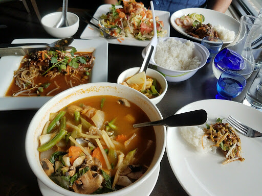 Spotty service; some servers and bussers were great, but one soured our experience when she vanished prior to our food arriving with no hand-off to another server (the kitchen delivered our food). Egg noodles tough and chewy, while the rice similarly seemed overly chewy. Definitely less spicy than expected; a four level spice factor listed in the menu makes for quite bland at three. It is worth noting that the Tom Yum Gai was quite tasty, and their Satay was good, though unexpectedly not skewered. Food is nicely served in sizable portions on serving plates to share family-style.
