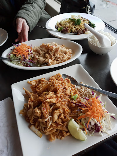 Ive been here several times and love it! The atmosphere is soothing and comfortable when dining in. Ordering to go is also pleseant, the host is very kind and often chats a bit with me before I leave. I usually order Pad Thai or the Singapore noodles. While my husband likes to try the various curries they offer. The prices are a bit imtimidating but the portions are large. So its well worth it, espacially for how yummy they are.