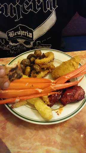 lots of old school Chinese American food. You know--the usual, "Chinese" doughnuts made out of deep-fried refrigerator biscuit dough, tempura battered odds and ends with sweet and sour sauce on the side. Various vegetables and assorted kinds of Asian styled meat dishes, along with jello, pudding, cut up veg, many kinds of sushi rolls (all with fake crab, tobiko, some kind of mayo sauce, or suspicious-looking raw tuna and salmon. Some of the raw tuna/salmon looked and smelled pretty bad last time I was there, but I didnt get sick. All in all, not a bad place and Id go again.