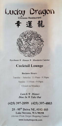 I drove the extra miles to Lucky Dragon over Peking Duck in Snohomish because of the good reviews. However, I was very disappointed. I ordered an individual combo because it had everything I like: Hot & Sour soup, Kung Pao Chicken, Fried Prawns, Spring Roll and Fried Rice. The soup tasted like chemicals, the rice was very dry, the Prawns, although large, were about 50% breading, and the Kung Pao was NOT spicy! Not even a tiny bit. The Spring Roll was very bland. All in all, it was a huge waste of time, gas and money! Very disappointed and will not return.