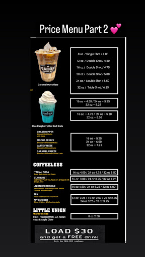 HELLO MY NAME IS MIKE JOHNSON AND I HAVE BEEN GOING TO BOTH UNION COFFEE STATIONS FOR ALMOST 9 YEARS NOW YES 9 YEARS AND ILL TELL YOU WHAT IF I DID NOT LIKE THE BARISTAS OR THE MOCHA I DRINK EVERYDAY I SURE WOULD NOT GO BACK, BUT FOR ALL THE YEARS I HAVE HAD GREAT SERVICE, AWSOME MOCHAS AND THE MOST KINDEST TALKING BARISTAS I HAVE ENCOUNTERED AND MOST HAVE BEEN THERE THE WHOILE TIME I HAVE BEEN GOING. EVERY TIME THERE MAY BE A NEW ONE THEY ARE JUST AS CLASSY AS THE OTHERS. I HIGHLY RECOMMEND BOTH UNION STATIONS TO EVERYONE, OPEN ON TIME EVERY SINGLE DAY, ALWAYS A SMILE AND ARE VERY TALKITIVE YOUNG WOMAN AND THE BEST MOCHAS AROUND AND IF I COULD GIVE THESE PLACES 10 STARS I WOULD... THANKS MANAGEMENT AND BARIITAS!!!!!!!