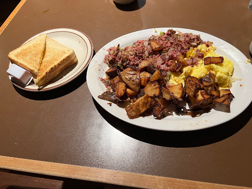 Traditional coffee shop. We love to have breakfast here, usually in the lounge. I can vouch for their Bloody Mary & and Chicken fried steak and eggs. Theyre as good as it gets, and a reasonable price. In the bar theres a big screen TV with sports on and pull-tabs to play. Can be busy at times, but good always comes out fast.