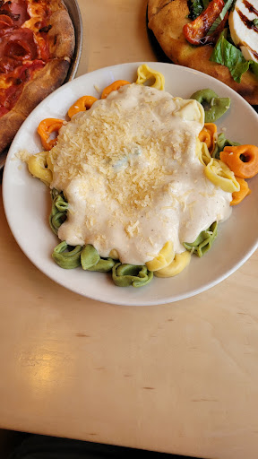 The food was horrible but the service was beyond horrible. The waitress couldnt answer basic questions about the menu. Brought out a bottle of wine dripping with wine she has split all over it and set it on the table. Didnt get our order right then took it back and didnt make up for it on the bill or by bringing bread or anything. The order just got put back in as if we just ordered. Then the waitress came over and said it would be 8 min. 20 plus min later the pizza came. The crust was so thin you could see through it. It was so greasy that when you turned a slice sideways a puddle of grease would form on your plate. Very disappointing